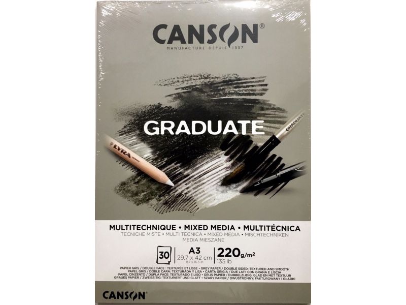 Canson Graduate Mix Media Gri Ton 220g 30 Sayfa A3
